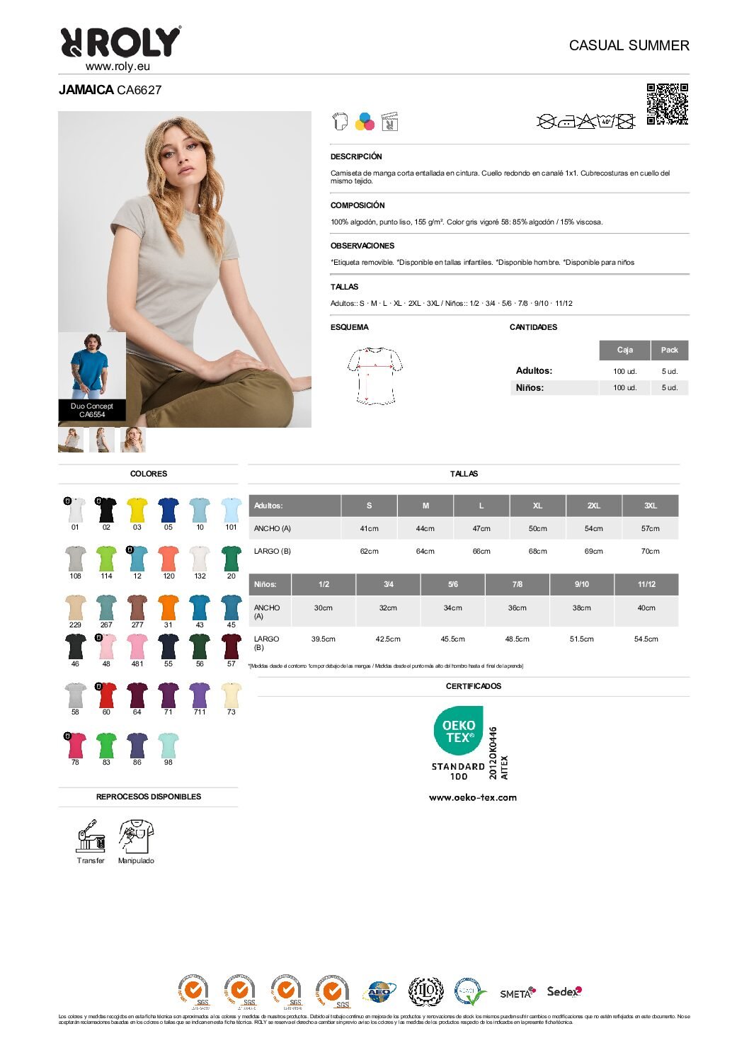 | Color | Blanco, Negro, Rojo, Verde botella, Granate, Amarillo, Marino, Naranja, Rosa claro, Fucsia, Gris, Celeste, Beige |