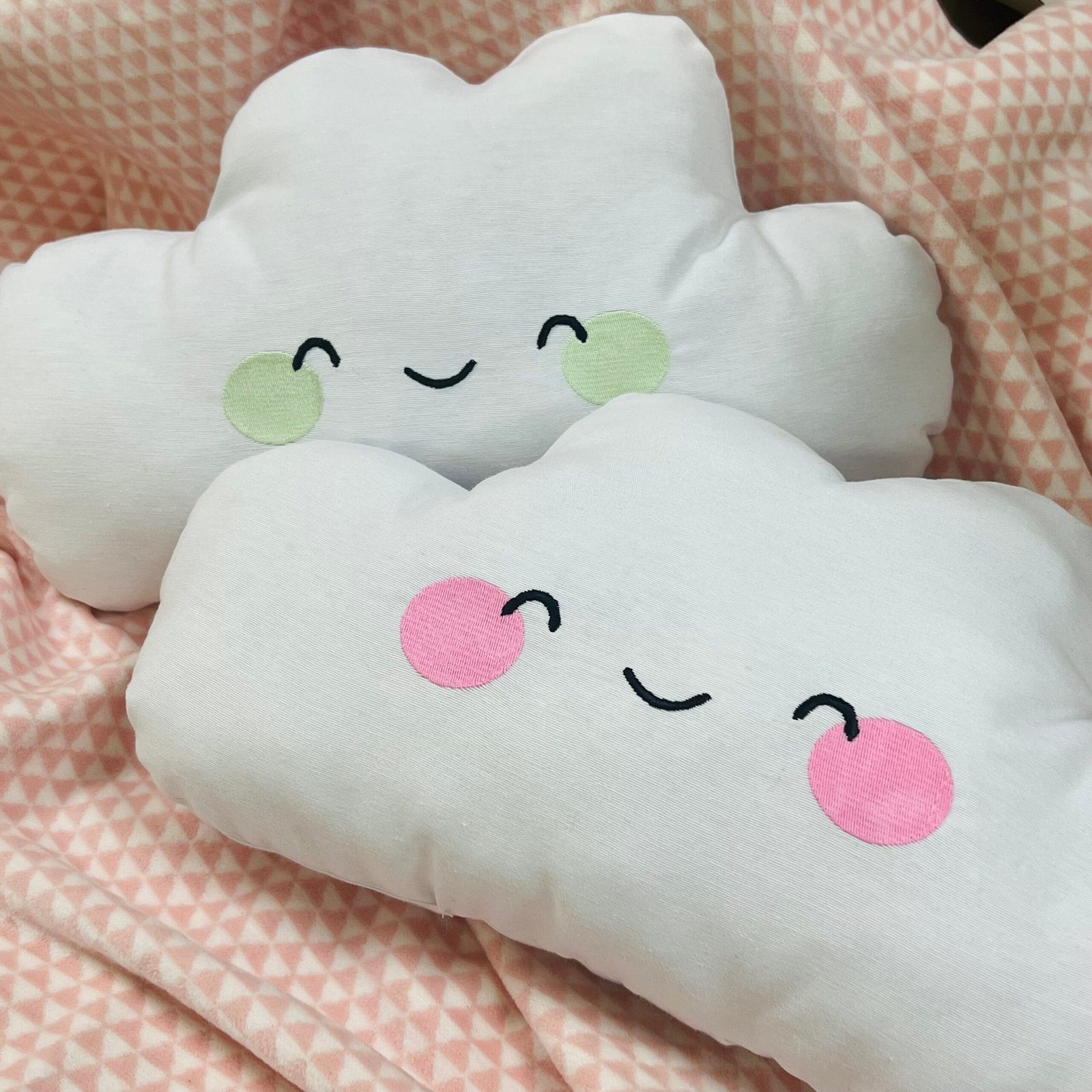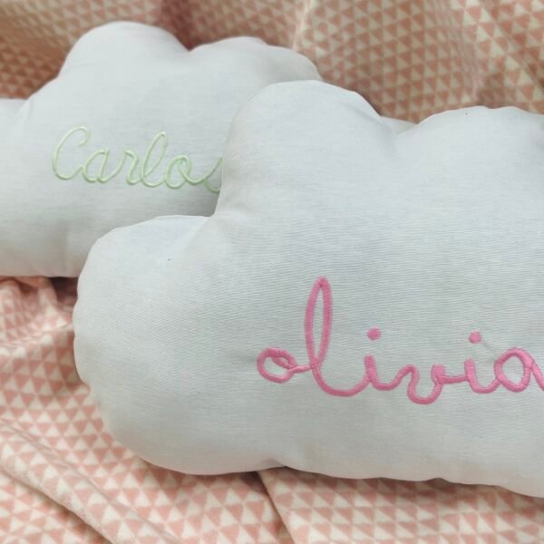 Cojín de loneta 100 % algodón con nombre y  carita bordada.