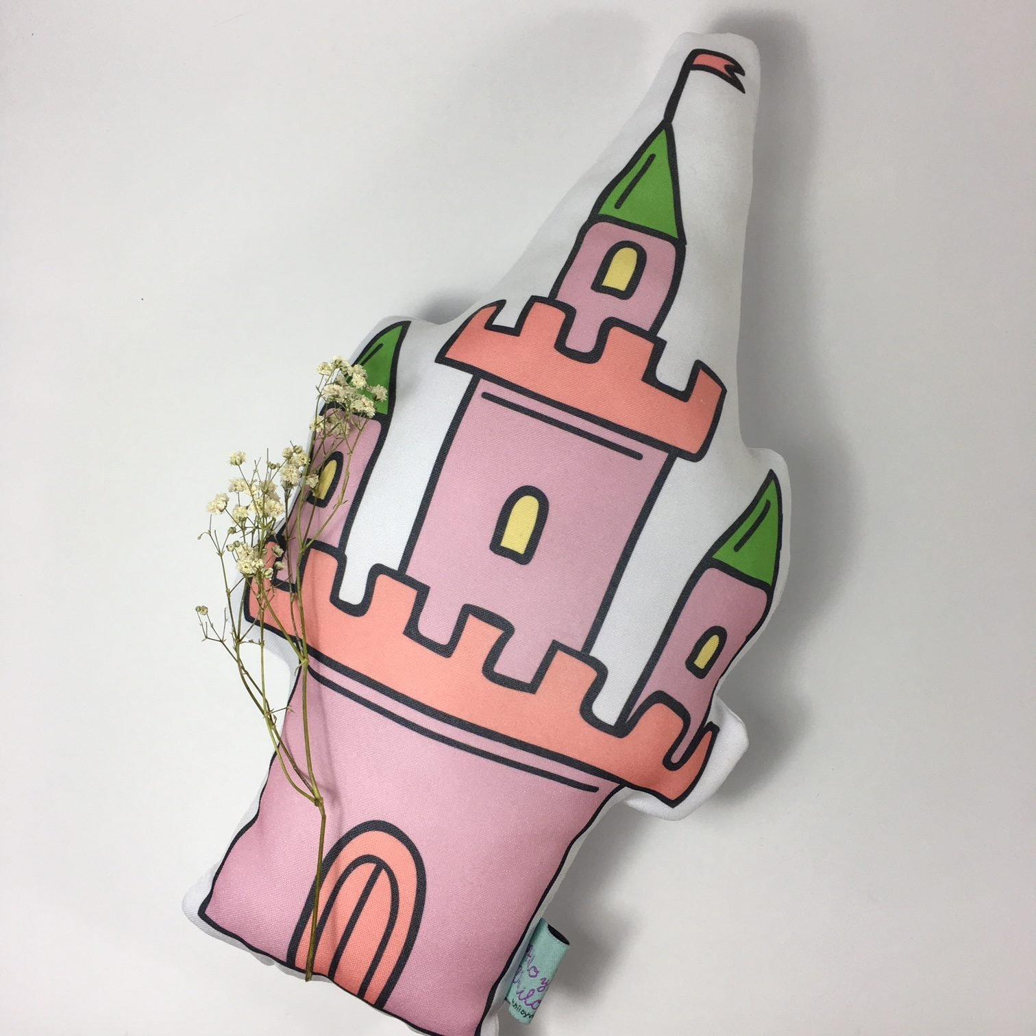 Cojín con estampado de castillo 100% poliester.
