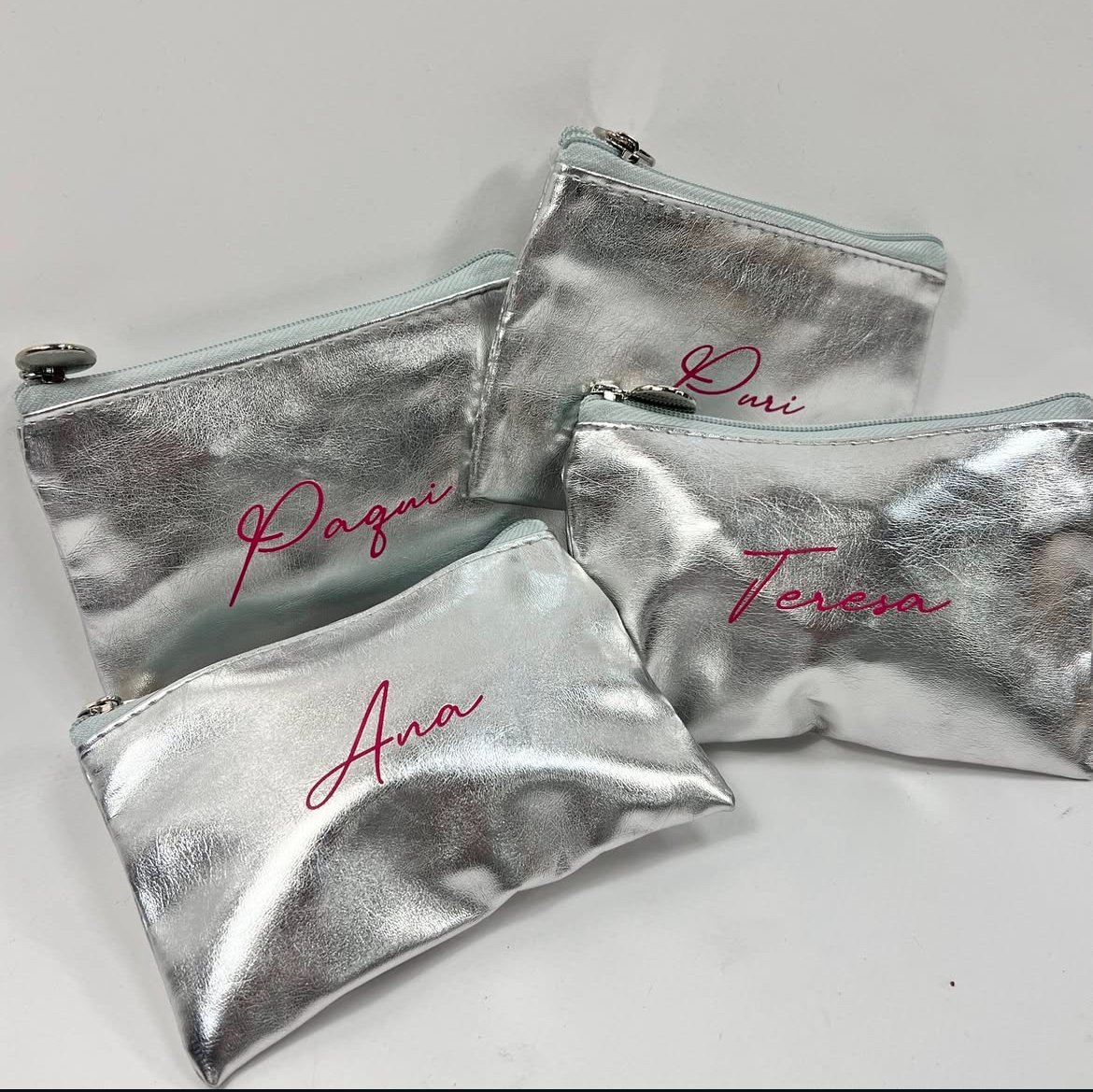 Este neceser personalizado está fabricado en un suave polipiel y en delicados colores con acabado brillante. Su compartimiento principal se cierra con cremallera cuyo tirador va a juego con el material y el color del neceser.