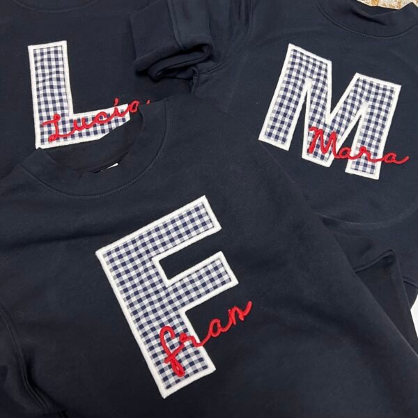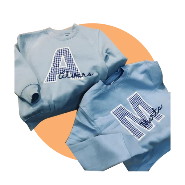 Pensadas especialmente para toda la familia, las sudaderas iniciales ofrecen un estilo personal y distintivo que complementa cualquier guardarropa. Con iniciales realizadas en tela de vichy y bordado de alta calidad, estas sudaderas no solo destacan por su diseño único, sino también por la posibilidad de personalizarlas para adaptarse a tus gustos y necesidades. Atrévete a darle un toque especial a tu outfit o regalar algo único.