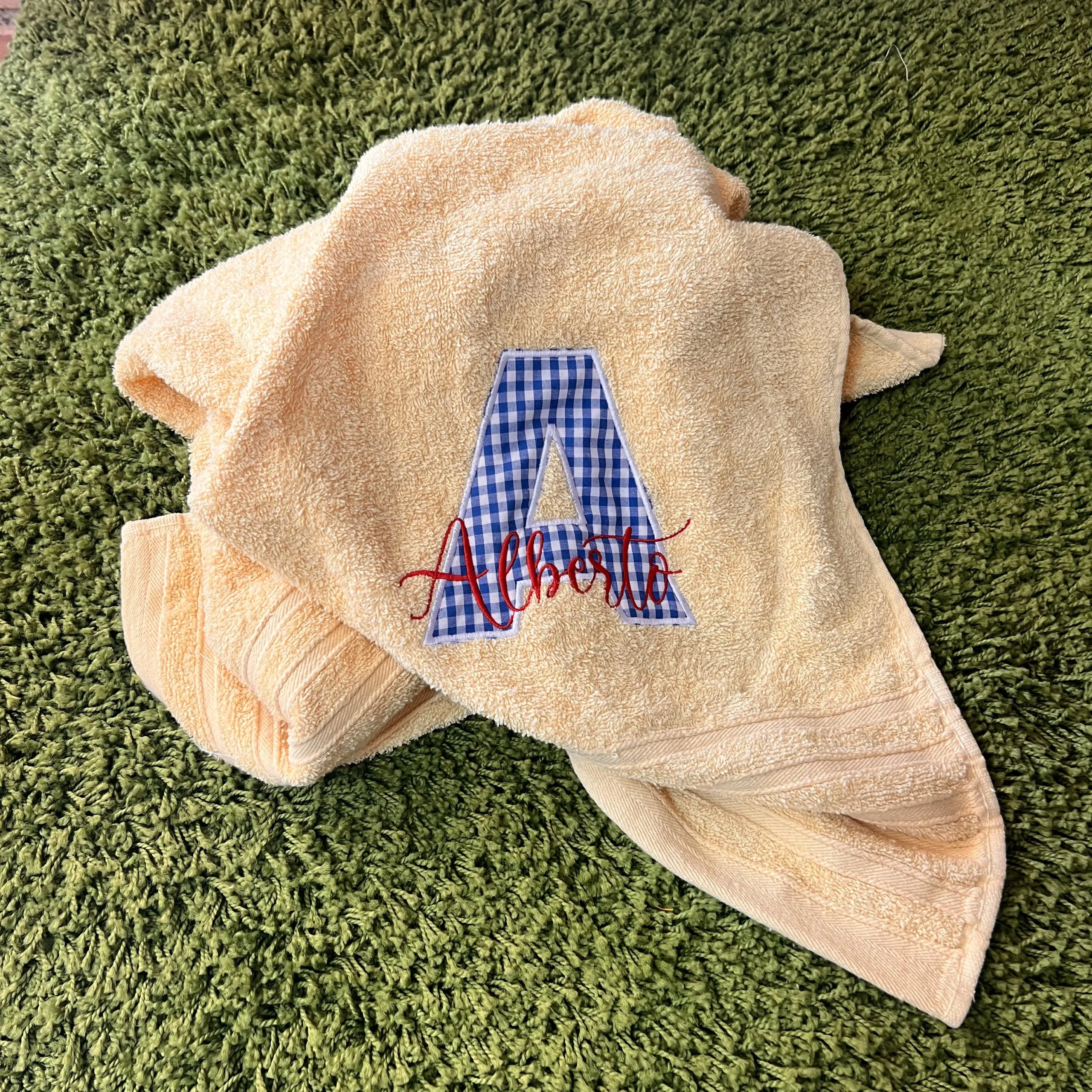 Disponible en una amplia gama de colores vibrantes que incluyen rojo, azul marino, azul royal, gris, verde manzana, fucsia, amarillo y rosa, esta toalla se adapta a todos los gustos y estilos. Personaliza cada pieza con un nombre o inicial en un grabado de 15cm x 15cm, dando lugar a un producto único que refleja tu personalidad.